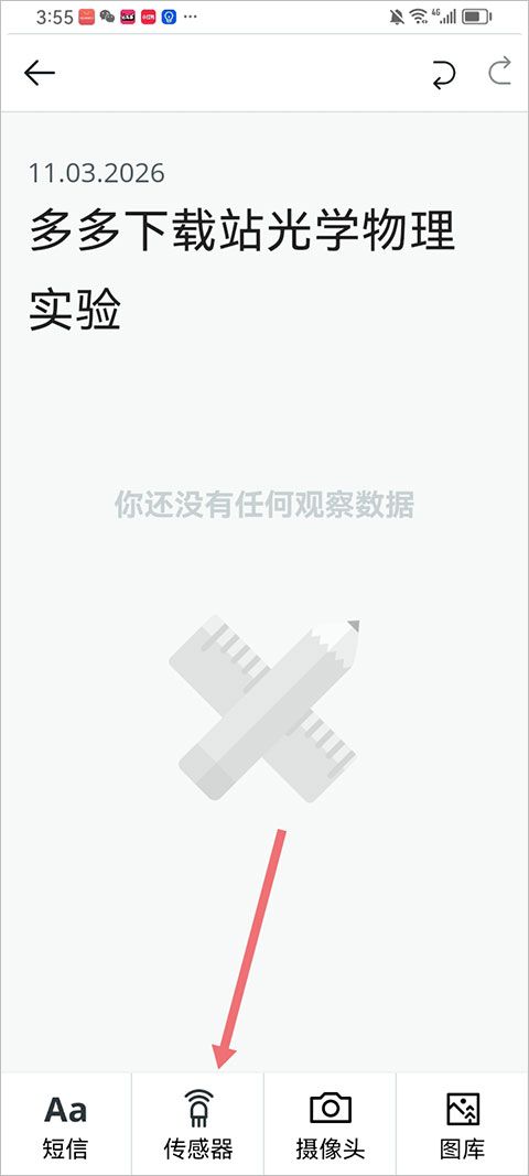 打开科学日志App后,点击右下角的“+”号 创建一个新项目。你可以为实验命名(例如“研究电梯里的重力变化”),这是你存放所有数据、照片和笔记的数字笔记本。
