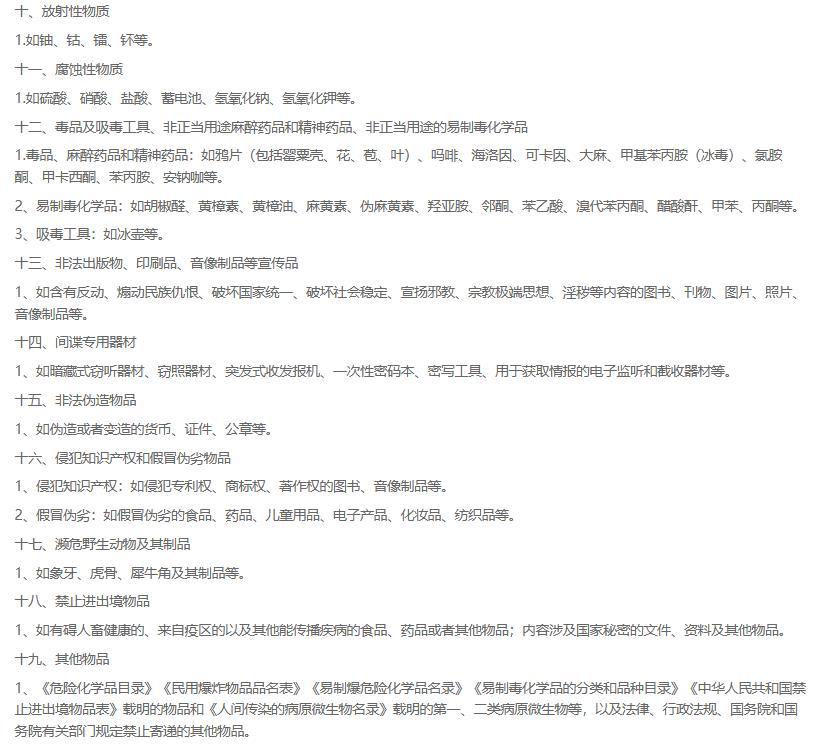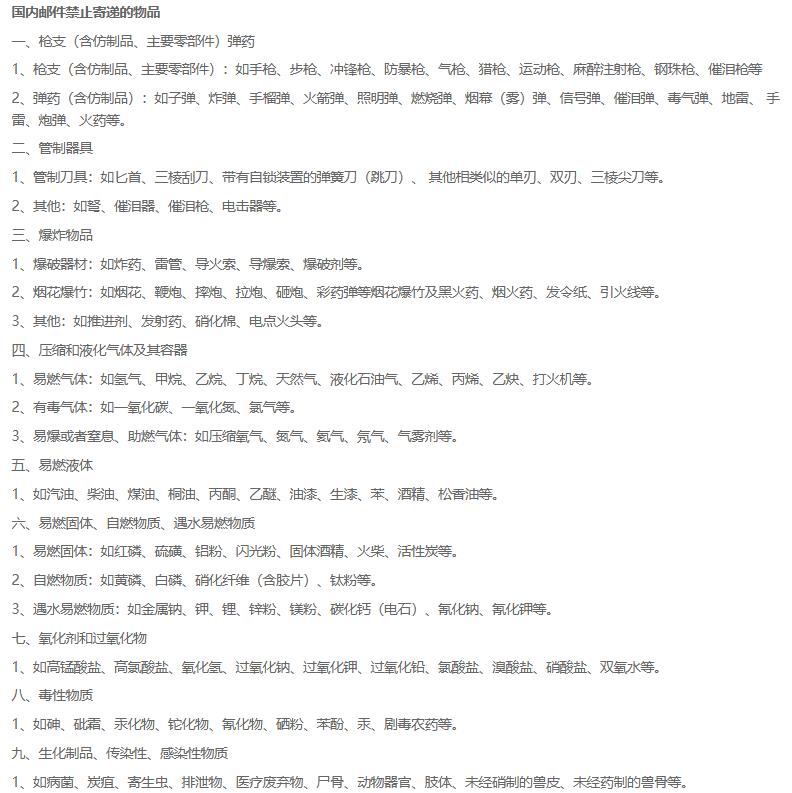 邮政邮件禁止寄递的物品有哪些