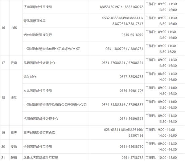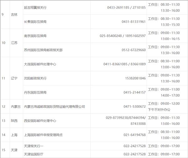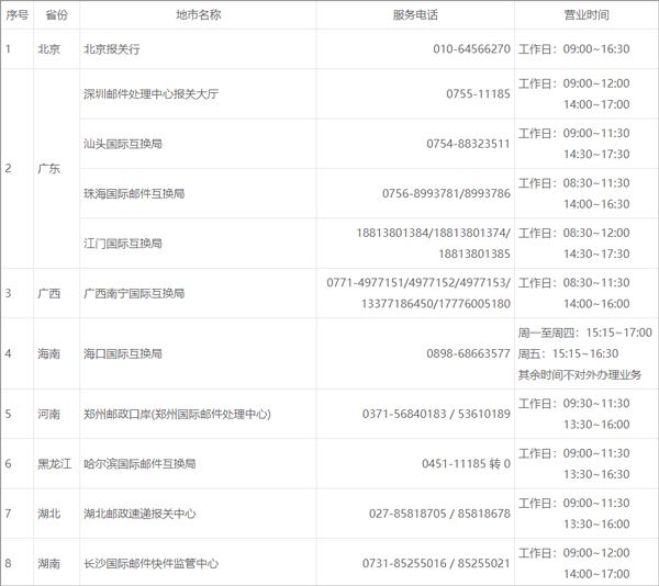 三、各地货物申报手续办理信息
