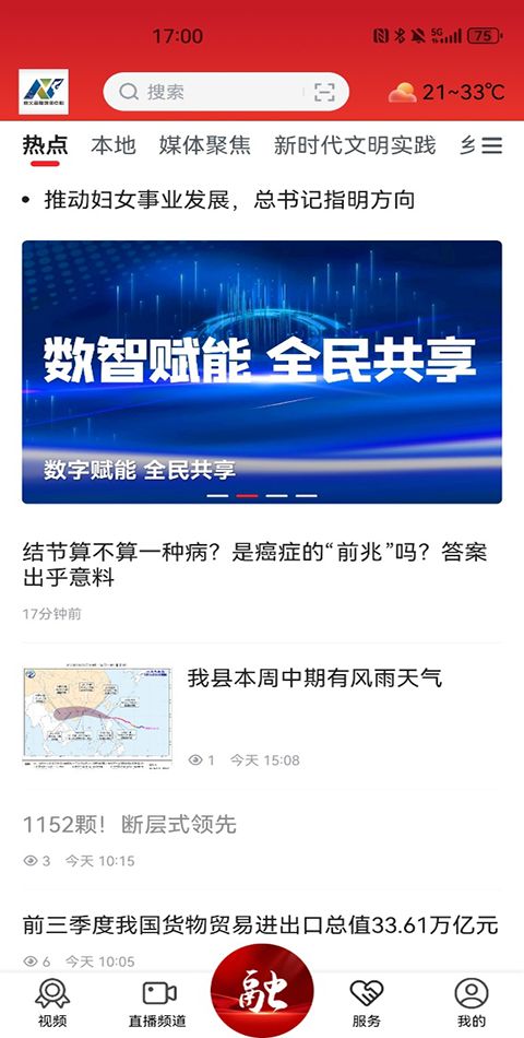 6、实时的新闻头条信息,融媒体主页随时将最新的新闻推送,还将重要新闻置顶。