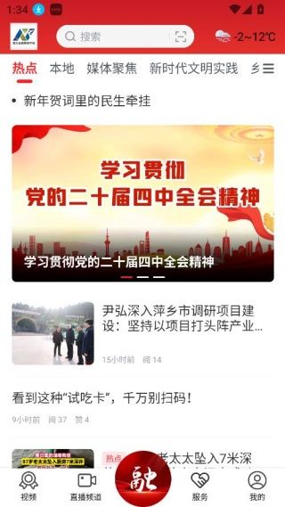 3、丰富的融媒体信息主页,该页面设置了头条、要闻、党建以及南昌等栏目;