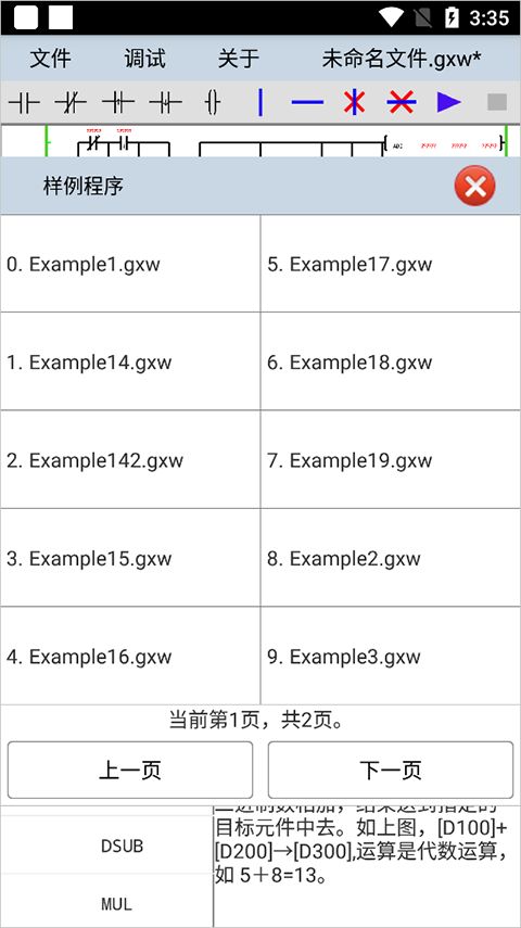10、点击文件一>样例程序,弹出的对话框中选择样例文件,打开样例文件完成。将两手指按住梯形图编辑区域,曼慢移动手指,即可实现梯形图的缩放。