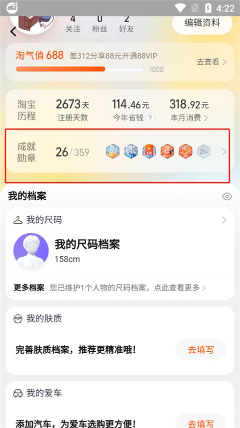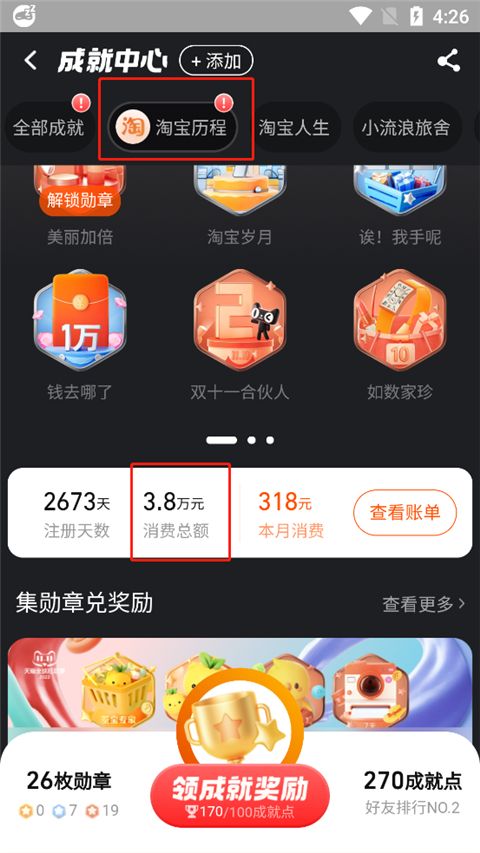3、点击淘宝历程就能看到自己的总注册天数和消费总额;