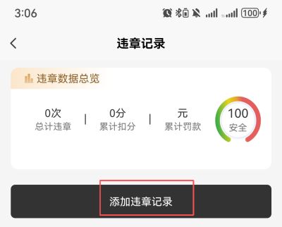 2、进入后,点击【添加违章记录】;