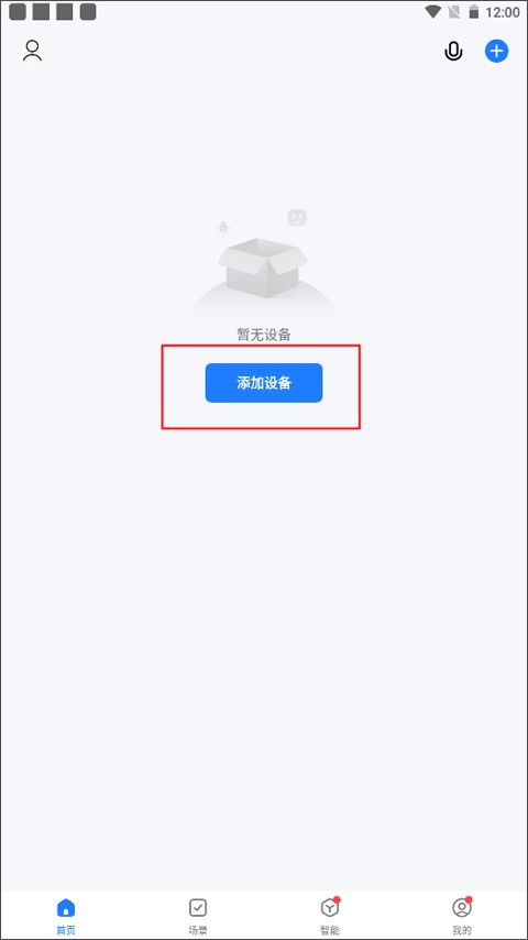 1、打开app并进入【首页】,点击主界面唯一的功能按钮“添加设备”。
