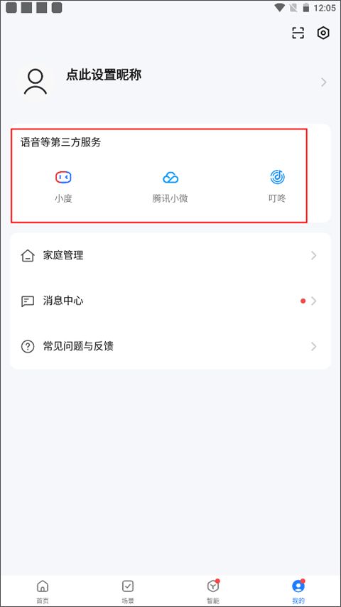 1、点击切换到【我的】界面,在“语音等第三方服务”中你可以连接小度、腾讯小微、叮咚等相关智能音箱。