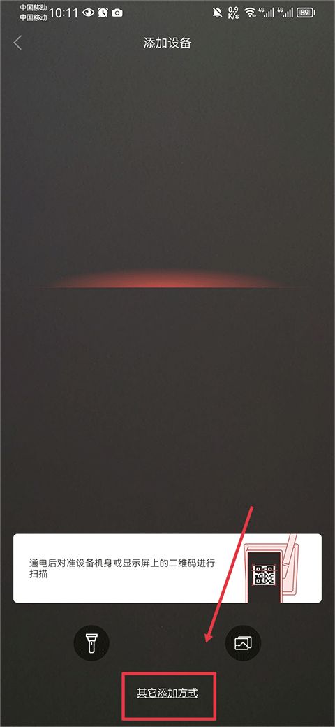 2、将手机对准设备机身或显示屏上的二维码进行扫描即可添加,若扫描不了可以点击下方其他添加方式
