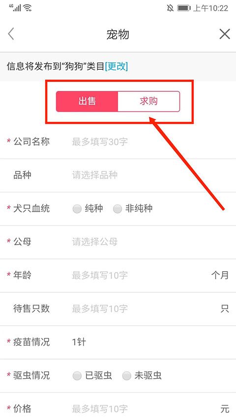 3、选择需要发布的宠物类型,这里以“狗狗”为例。