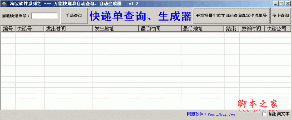 万能快递单自动查询自动生成器 v1.3 绿色版 大小:285KB 分类:网络辅助 环境:Windows 更新:2013-10-16 下载 热门排行 JOJO奇幻冒险 蜡笔小新 咒语旅团 越狱模拟器 最后生还者 架空地图 交易猫 乐高大乱斗 小偷模拟器 石河伦吾的朋友们 道友请留步 欢乐小镇 简介 万能快递单自动查询自动生成器,可以手动、自动双向查询生成市面主流快递公司快递单号,真正实现生成的快递单不连号,不连地址!全自动方便快捷批量处理。在生成过程中,软件会直接查询单号是否真实有效,保证每个生成的单号都是真正存在的。