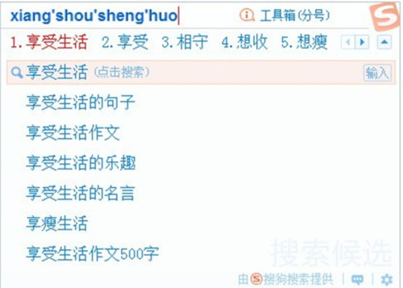 对于每条搜索候选词,我们都支持搜索或输入(上屏)功能。