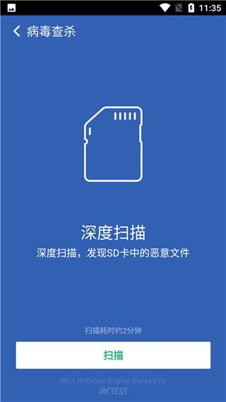 4、深度扫描可发现SD卡中的恶意文件,通常扫描耗时约为两分钟;