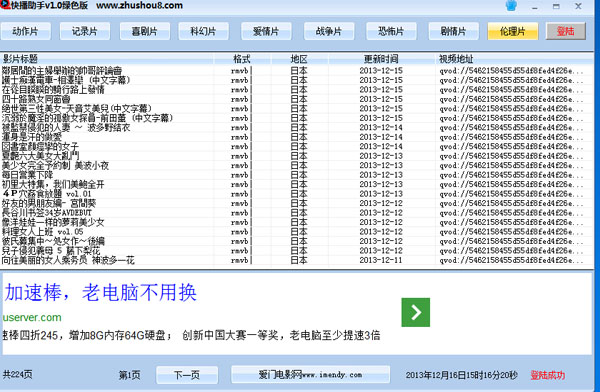 快播助手的伦理片自动搜索网上最新的各类快播伦理影片,为了不让小盆友随便打开,软件设置的必须登录后才可选中播放伦理类影片,当然,登录用户名和密码都是免费注册的,快播助手1.0 属于测试版,还没有提供开放注册功能,这里提供一个测试用户名和密码。用此用户名和密码登录软件便可解除所有限制。