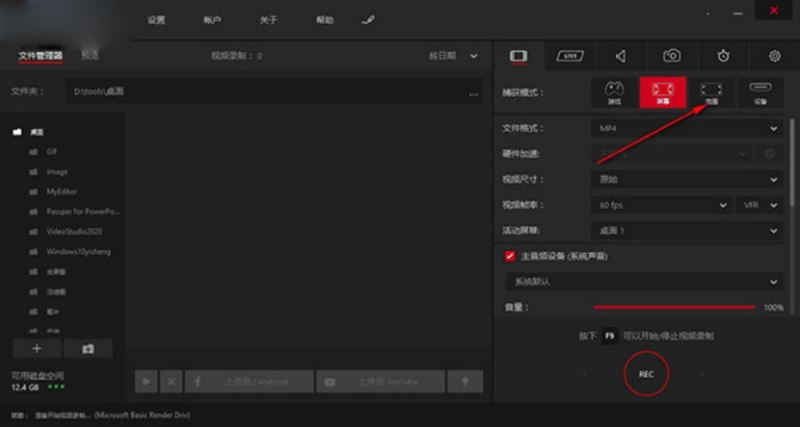 4、显示软件的相关录制信息,点击范围录制功能,可以自己设置录制的区域