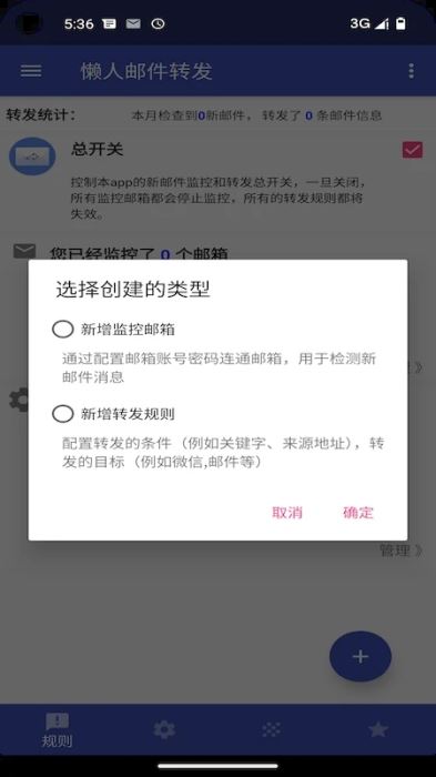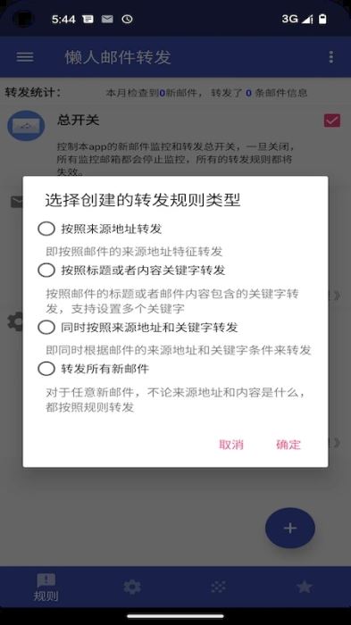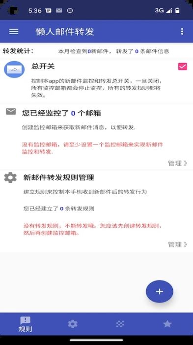 懒人邮件转发手机端使用的电子邮件消息转发工具,这款工具支持一键添加创建转发规则,并能自定义选择对应的类型,支持用户自定义对转发开关进行管理,可一键关闭或开启等,欢迎下载。