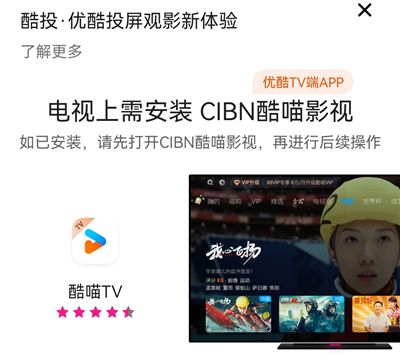 1、投屏前我们需要在电视上下载CIBN酷喵影视,然后打开。