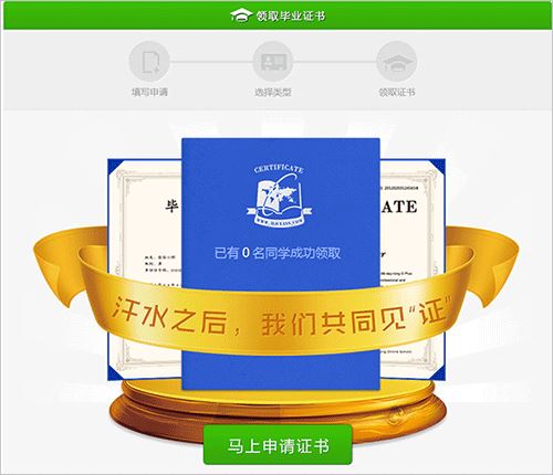 第二步:点击进入后,申请毕业证书,达到班级申请条件,即可申请成功。