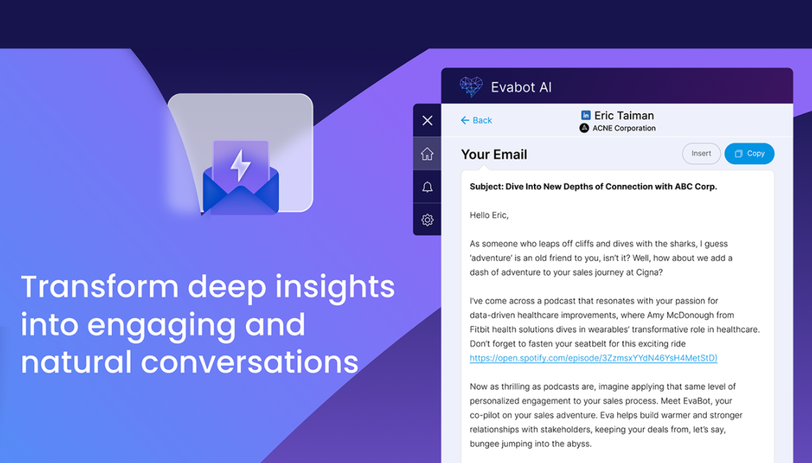 Evabot Sales AI是一款利用人工智能技术提供销售洞察和自动化销售流程的平台,EvaBot AI 通过简化客户和潜在客户研究来彻底改变对外销售,以增强您的外展能力。。从 10-K 报告到季度收益电话等不同数据源收集深入的背景洞察后,EvaBot 可以智能地推断相关性并优先考虑对您和您的潜在客户真正重要的事情,然后提炼出超具体的精确销售触发因素,帮助您进入市场毫不费力地创建新帐户。