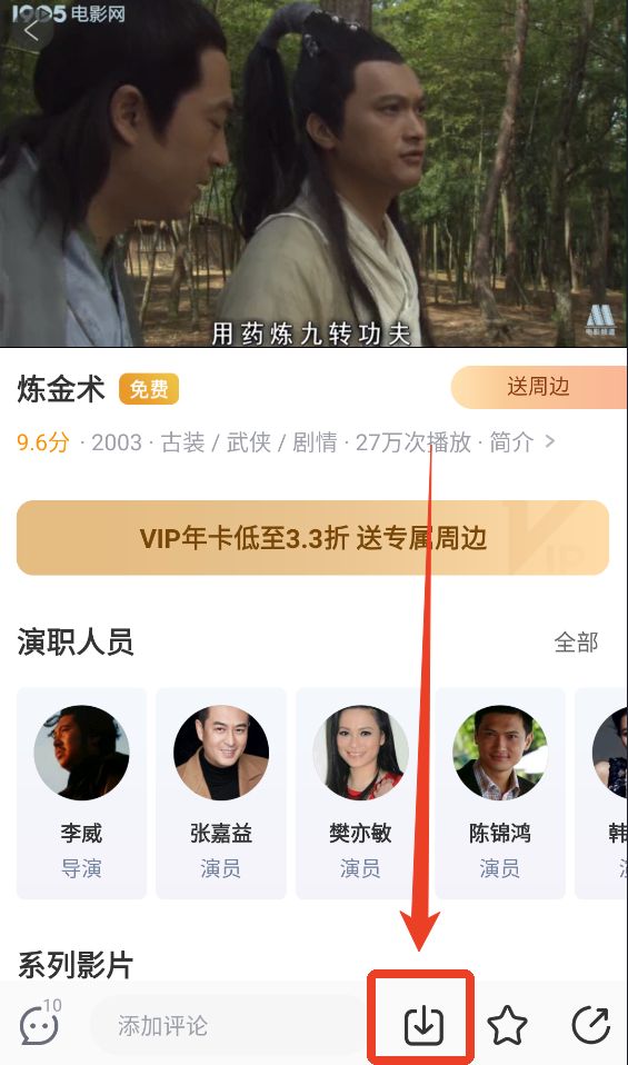 1、点击进入到电影的观看界面,下方会有一个下载的选项。