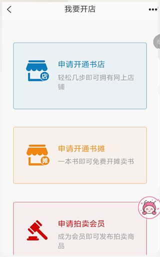 2、随后用户们需要开通自己的店铺,对于个人用户来说,点击“申请开通书摊”就可以了,一本书就能够免费开摊卖书。