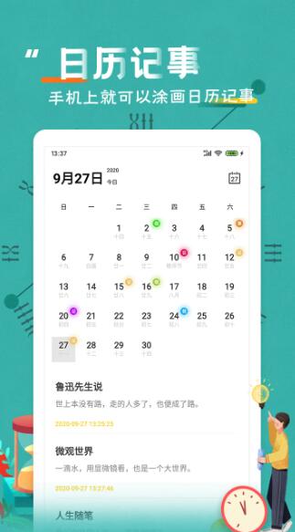 ●日历记事:圈点日历日子,快速建立备忘录记事本。