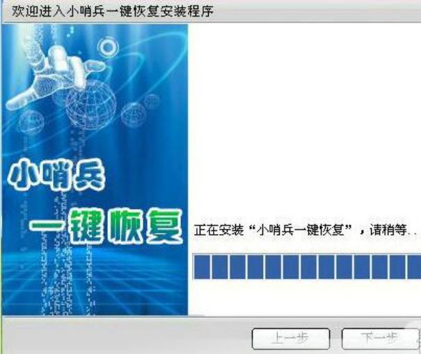 首先进入系统运行小哨兵一键恢复“一键恢复”安装程序。