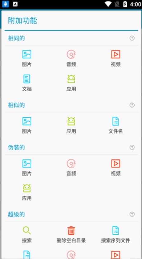 1、支持一款快速搜索安卓设备当中的重复文件。
