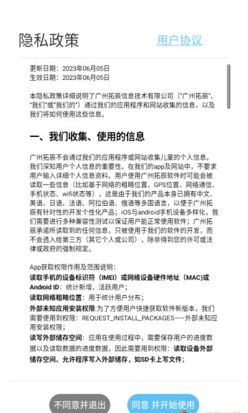 1.打开软件阅读“隐私政策、用户协议”点击“同意并开始使用”进入app