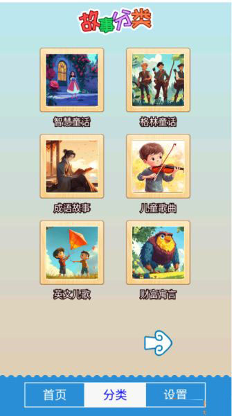 4.可选择你感兴趣的故事类型点击进入获取故事点击播放