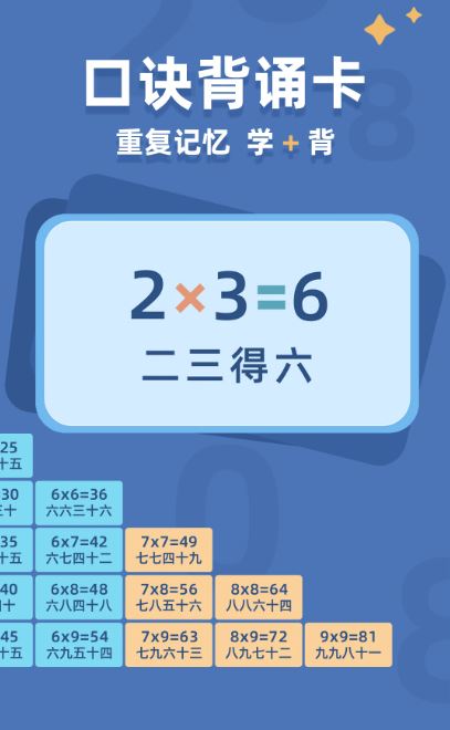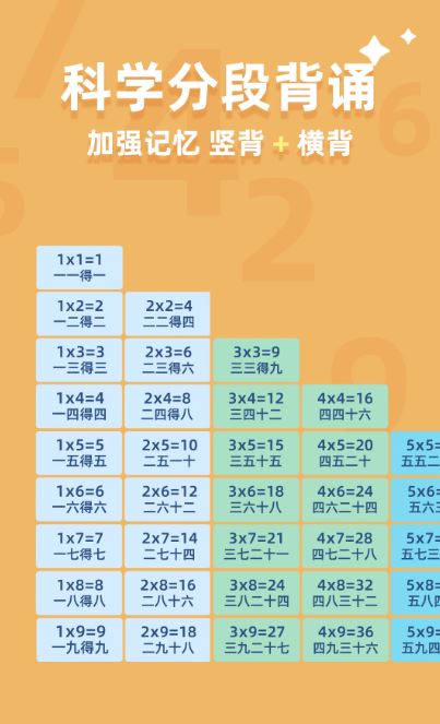 在应用中就能通过乘法表学习数学知识,轻松掌握口算基本能力;