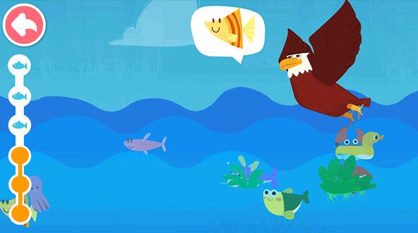3、帮助老鹰抓住它想抓住的鱼儿。