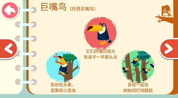 宝宝鸟类认知是一款鸟类百科APP,通过它宝宝可以认知老鹰、燕子、天鹅、鹦鹉、鸽子、巨嘴鸟等鸟类,认知它们的习性。让宝宝在娱乐中学习和成长,能更好的保护好地球上的生物。