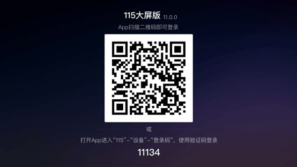 2、在电视上打开115大屏版显示登录二维码及验证码。
