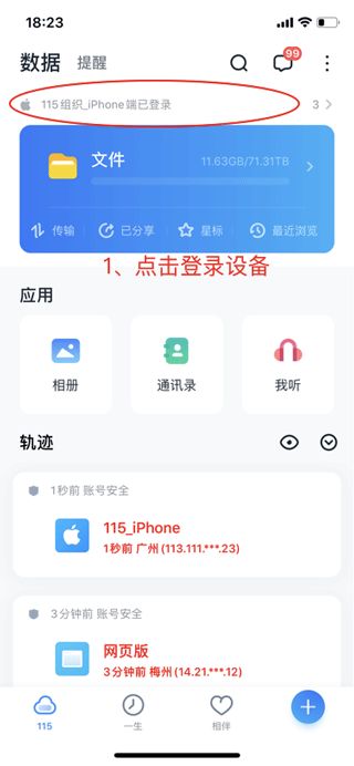 3、手机端登录后,点击登录设备。