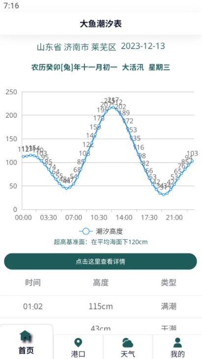 3.实时更新,利用智能定位功能,实时更新用户所在位置周边的潮汐数据;