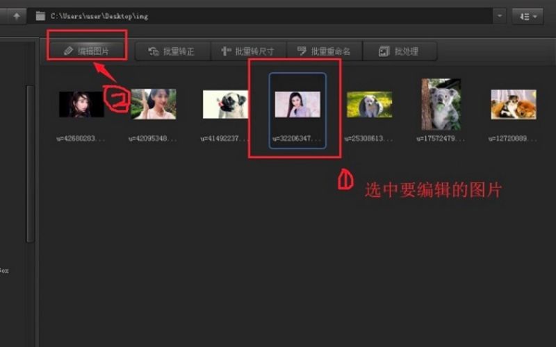 1、打开软件,然后打开导入任意图片。用户直接点击该软件左侧的目录区中,在目录之下直接选择想要修改的图片,点击导入即可。其次也可以使用快捷键Ctrl+O,在弹出来的对话框中,也可快速选择点击打开需要修改的图片。成功打开该图片之后,我们点击软件上方的【编辑图像】的按钮,如下图所示。