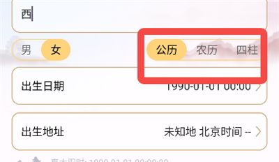 2、在选择出生日期时,我们可以选择公历、农历、四柱等方式。