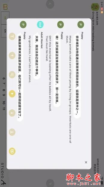 绘本内各个角色的对话与文字内容提供翻译与发音练习;