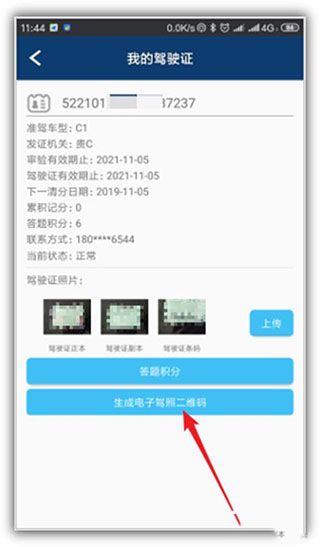 10、上传成功后,即可点击“生成电子驾照二维码”。