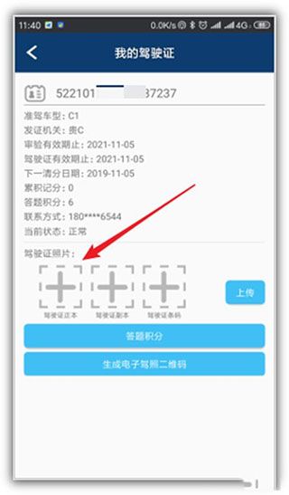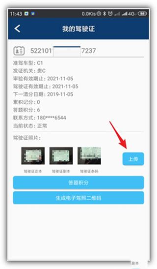 9、接着,返回到“我的驾驶证”页面,点击“上传”。