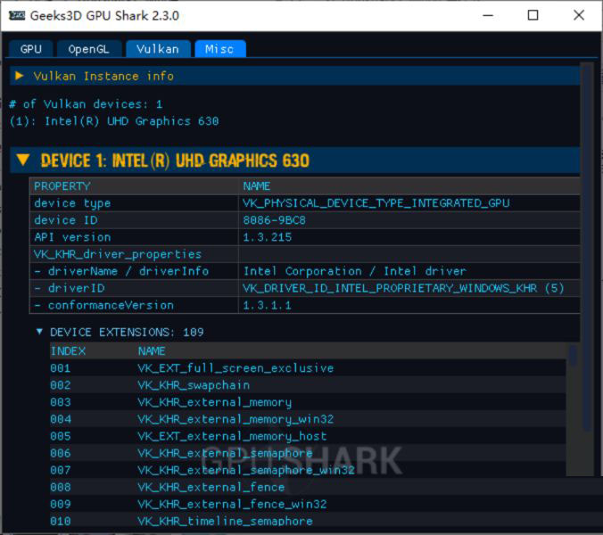 DEVICE 1: INTEL(R) UHD GRAPHICS 630