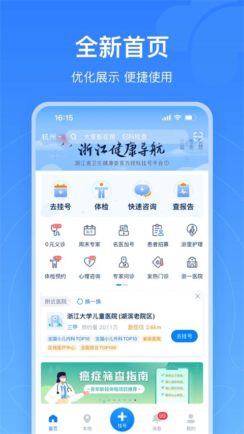 1、在本站下载并安装浙江预约挂号统一平台app,进入软件可以查看各项功能