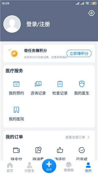 5、点击我的,可以登录注册软件,查看预约记录等