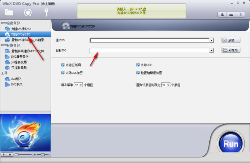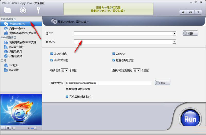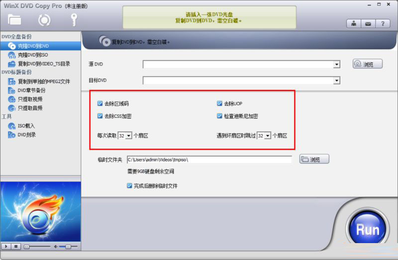 6、点击RUN按钮就可以立即执行处理,等待软件克隆DVD完毕