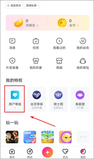 [我的] -切换为[用户] - [我的特权] - [用户等级]