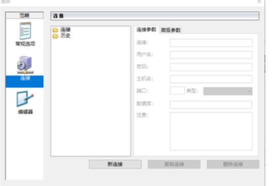 点击已存储连接右侧按钮①,打开下图对话框。点击“新连接”按钮,输入连接数据库参数。