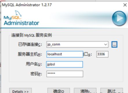 点击“关闭”按钮,切换回到原始界面,见下图,已存储连接默认选择刚创建的连接。点击确定,进入管理界面: