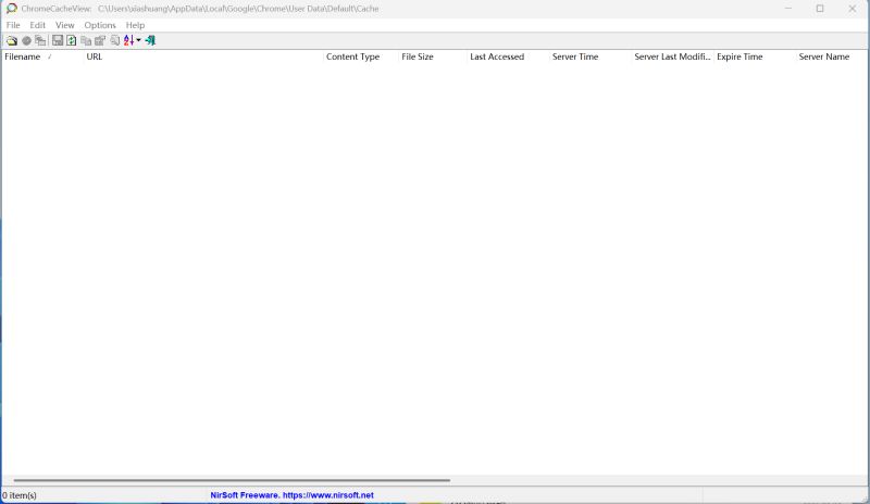 1、ChromeCacheView软件界面如图所示,可以自动读取缓存文件,如果你的电脑有谷歌浏览器就可以在软件界面查看数据