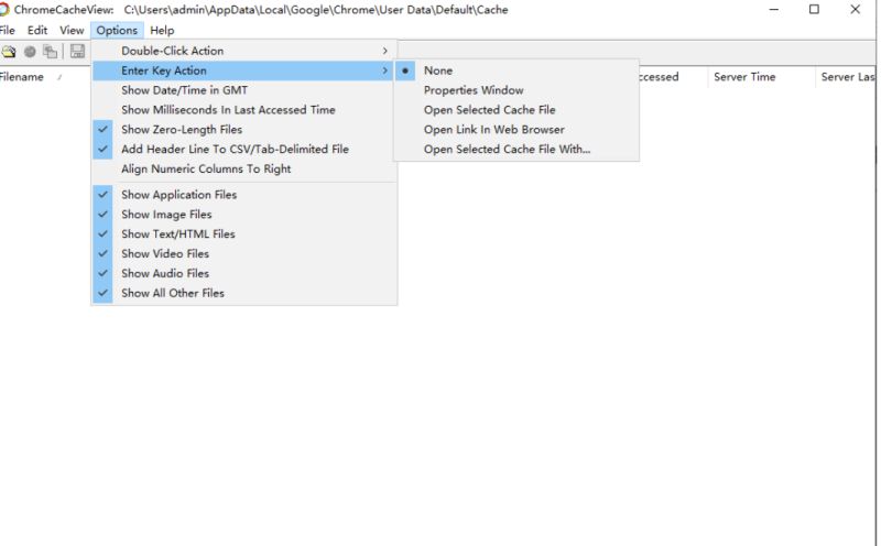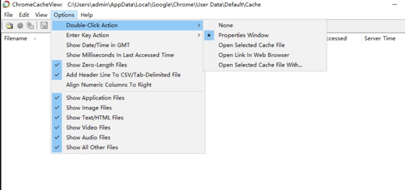 4、显示的内容:Filename、URL、Content Type、File Size、Last Accessed、Server Time