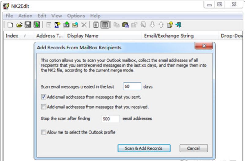 1、修改或修复NK2文件中存储的名称、电子邮件地址、交换字符串等信息