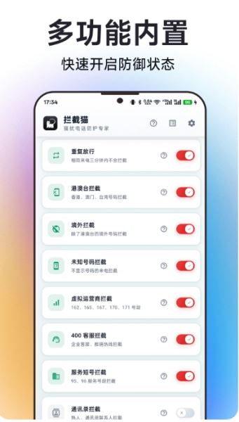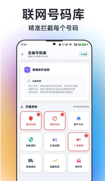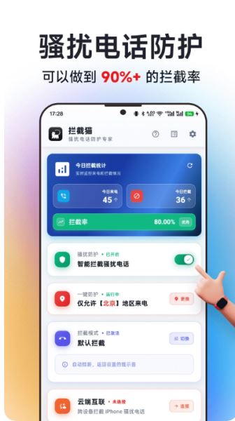 2、多重来电防护:采用云端数据库与本地标记相结合的方式,可拒接或提醒骚扰来电,还能按地区、号段甚至是电话号码的类型进行更精细的拦截。
